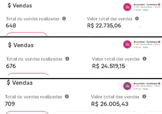 Abaixo estão prints reais das minhas vendas, direto do meu negócio de confeitaria feito em casa.